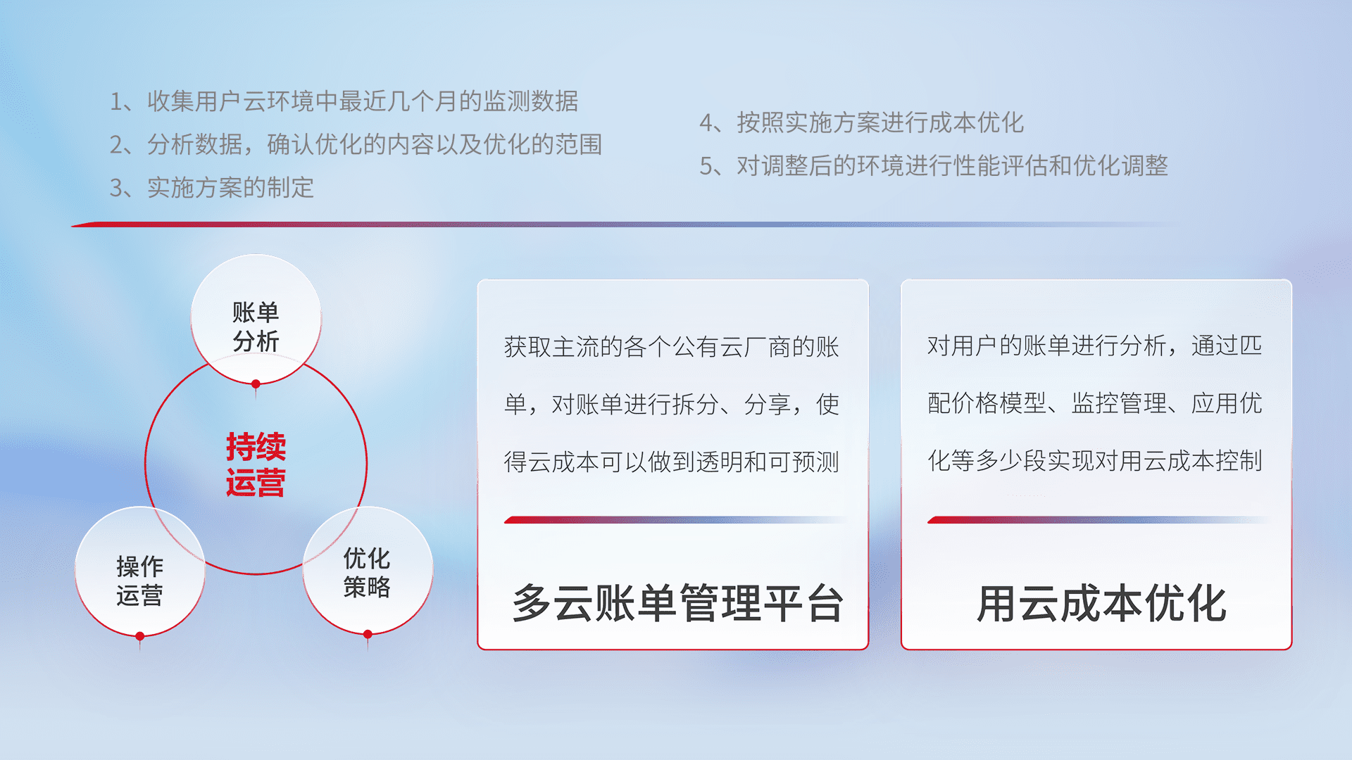 监控业务系统资源开销,,,,对资源的消耗精确计量,,,,实现费用的透明化管理,,,不断提升资源使用率,,,调整资源购买方式,,,,降低资源费用成本,,,用云成本可预测、、、用云费用可优化,,云资源配额有据可依。。。